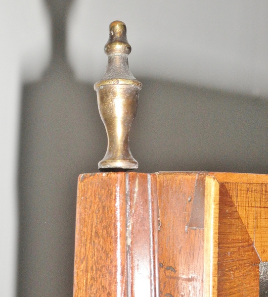 Dimensions: H 32”/81cm to top of finials, D 12”/30cm, W 28¾”/73cm base and W30”/76cm to mirror screws.