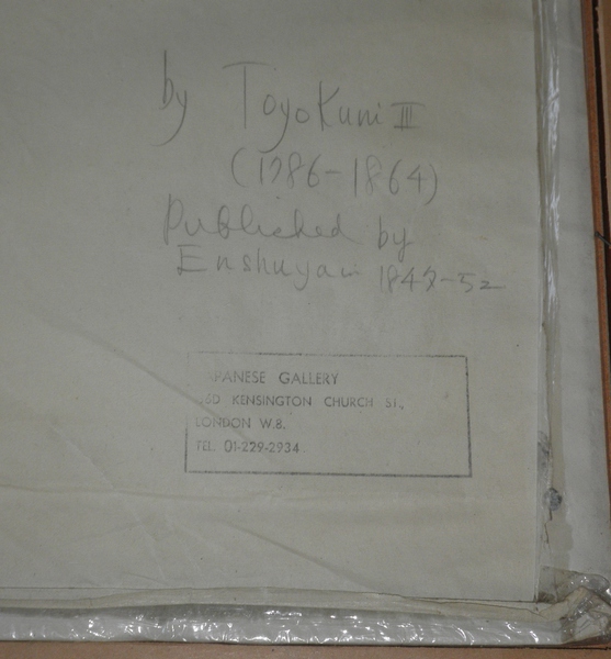 This framed print is one such example attributed by the Japanese Gallery, Kensington, to Kunisada I as per the accompanying cellophane packet noting the publication 1847-1852.