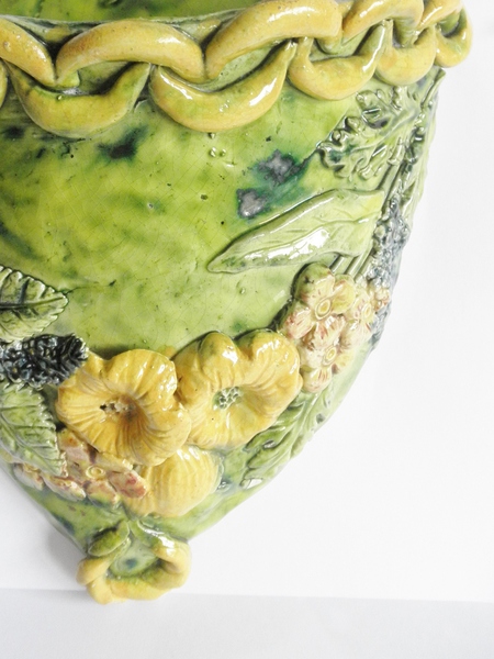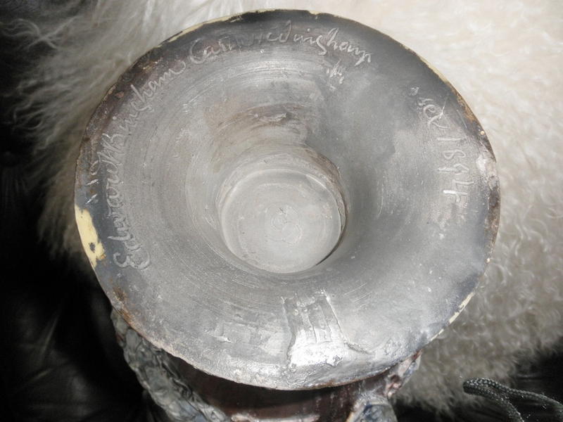 Although little known outside of the county of Essex, these studio pottery pieces by Edward Bingham [1829- 1914], (son and father of the two other family members bearing the same name) dates from the late 19th century (circa 1880 – 1890) and made at the family pottery near to the Norman landmark of Castle Hedingham in Essex; hence the name, Castle Hedingham Pottery.