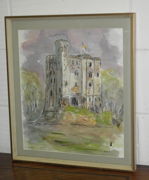 A signed (l.r.) and nicely framed watercolour by Richard Caink of Hedingham Castle Keep.