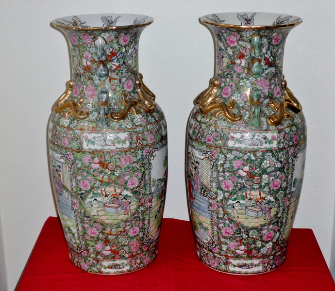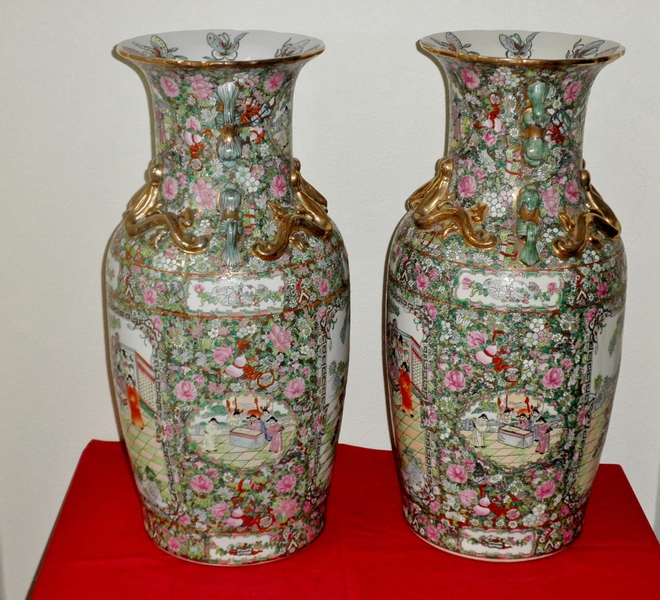 Pair of Chinese Famille Rose Floor Vases - SOLD