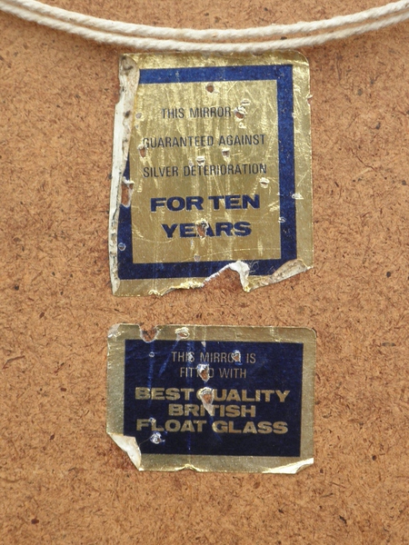 A British made wall mirror, labelled as “Best Quality British Float Glass - guaranteed against silver deterioration for 10 years” and still in very good condition. Dating from the late 1960s and featuring shaped teak edging along two sides with fixings to enable the mirror to hang landscape or portrait.