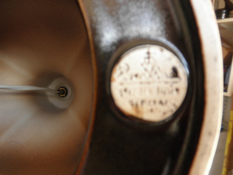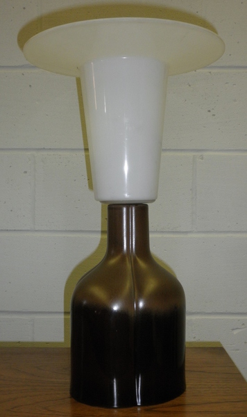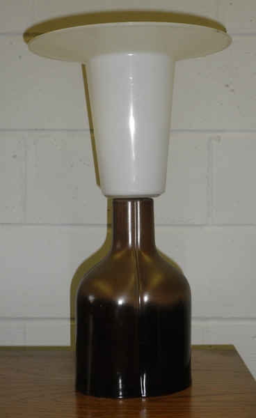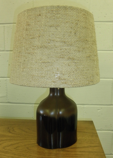 An attributed Rosenthal ‘Studio-Line’ two-tone brown glazed ceramic table lamp from the 1960s. The dark brown, quartrofoil base, rises to a lighter shade of brown at the shoulder and is complemented by the original shade of woven thread which sits on the top of a moulded synthetic diffuser / interior. Bearing the Rosenthal ‘Studio-Linie’ mark on the underside, the table lamp and shade are in excellent and original condition throughout.