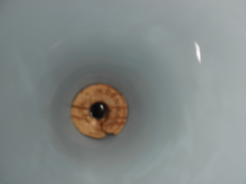 1960s Danish onion form pendant lampshade in bright blue with white interior cased glass in pristine condition with ‘Made in Denmark’ stamped on the original cork plug.