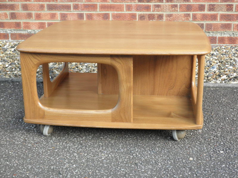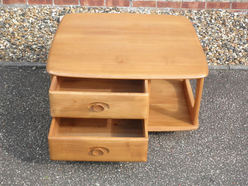 Another super example of Ercol’s timeless designs is this popular Pandora coffee table which incorporates two useful drawers and under-shelf, raised on sturdy castors for easy movement. The table has a minor compression mark to one side of the top surface but is actually in unrestored excellent and little used condition, still looking fresh and modern in style.