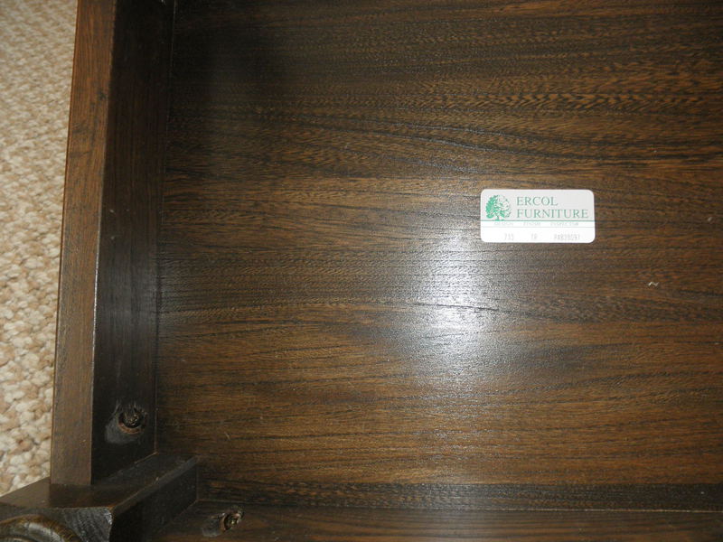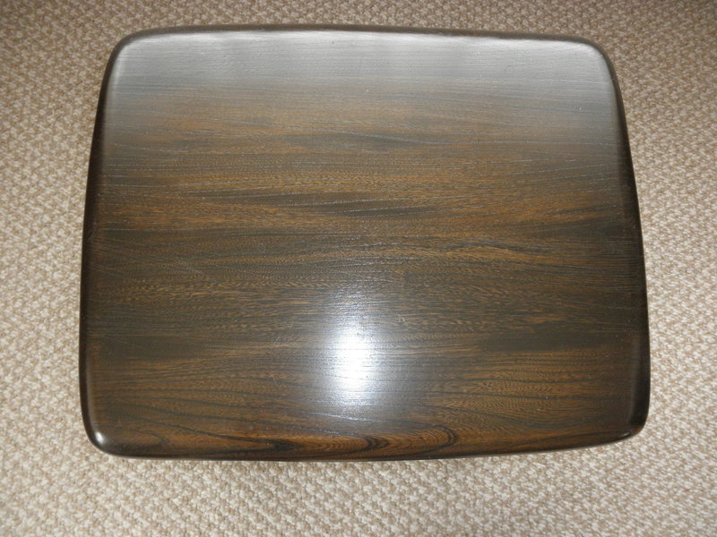 An Ercol Trinity Lamp table, Occasional or Small Coffee Table in the traditional Elm dark finish and labelled Design No. 733. In superb, immaculate condition, having formed part of a complete Ercol collection by original purchasers since new.