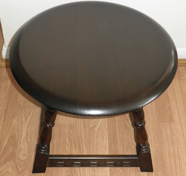 Although unlabelled we believe this very pretty, solid oak, circular table in the Traditional Tudor Brown finish is an original Old Charm / Jaycee piece by virtue of the quality, with turned supports and carved stretchers in excellent, vintage condition ideal for a period setting.