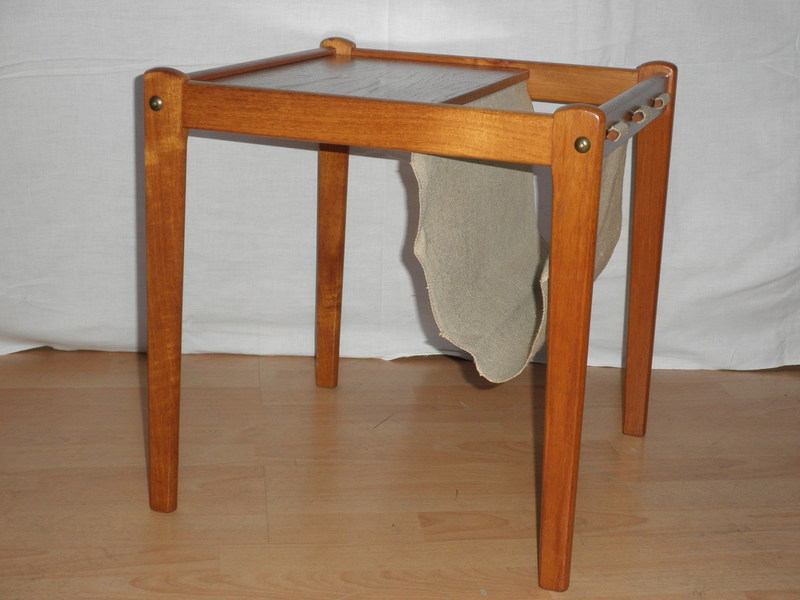 1960s BRDR Furbo Spottrup Teak Side Table & Canvas Magazine Sling