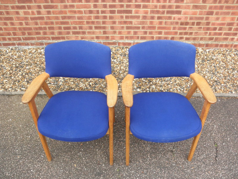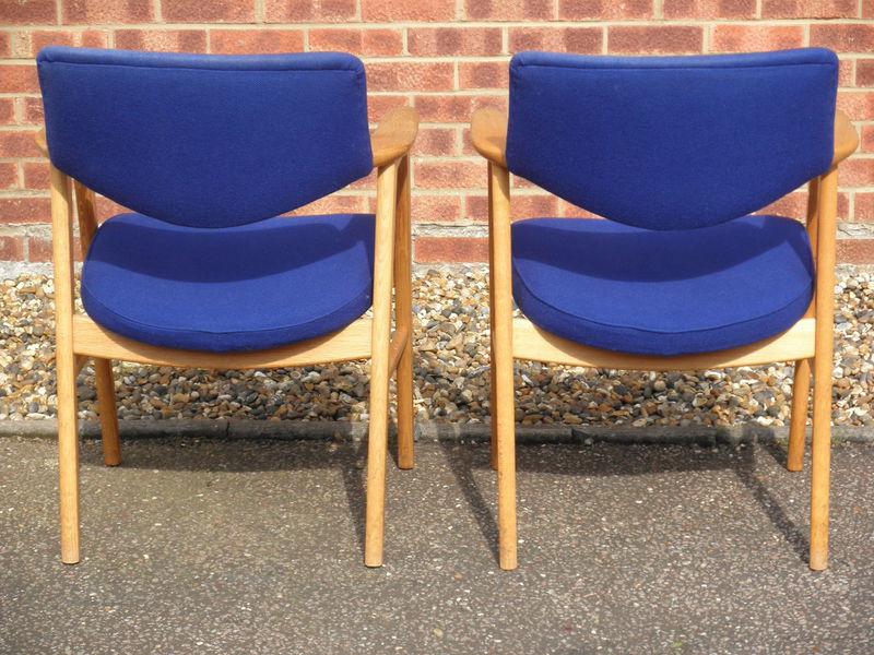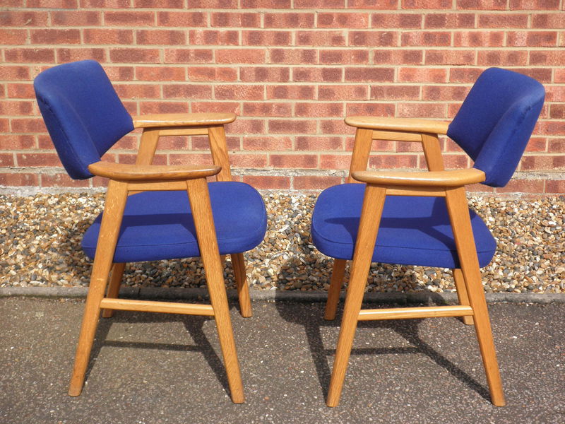 Covered in the original, eye-catching, vivid blue woven fabric, the chairs are in extremely good condition overall with only minor signs of wear on the upholstery, including fading and some small marks etc.