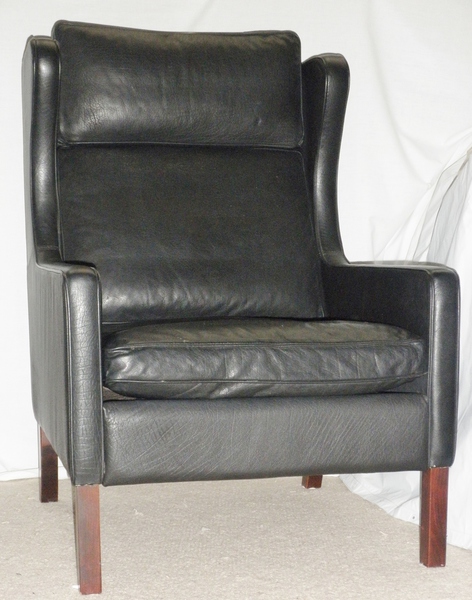 Stouby Black Leather High / Wing Back Armchair - SOLD