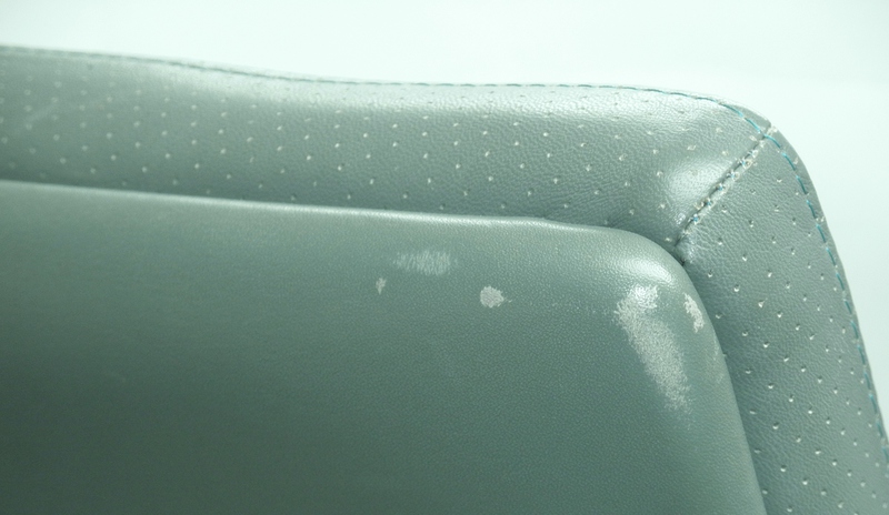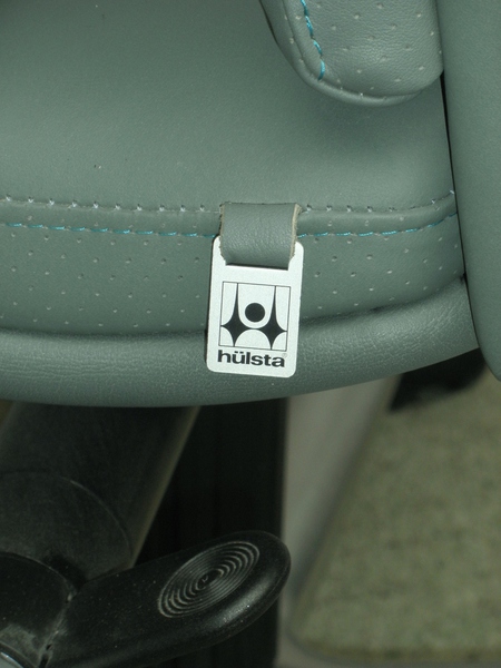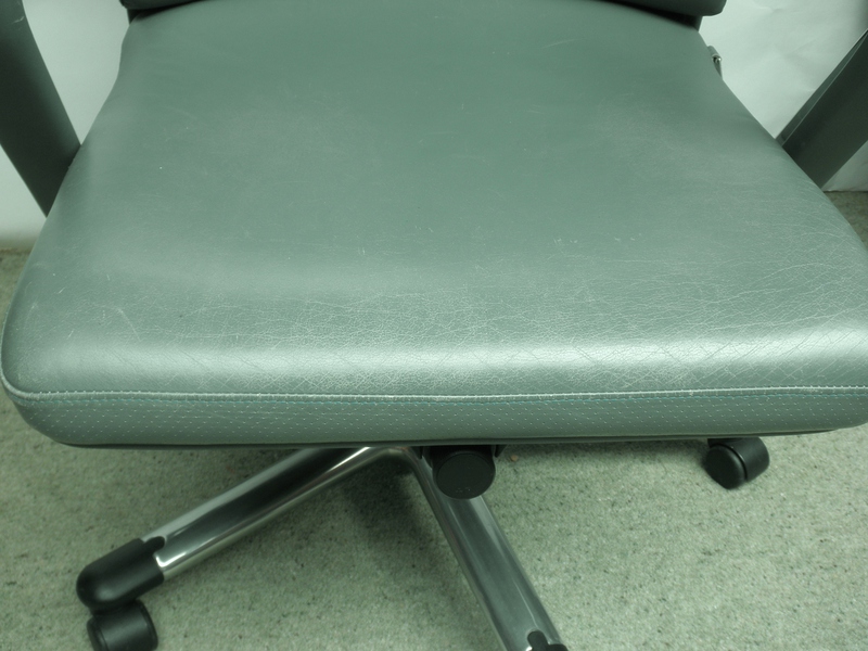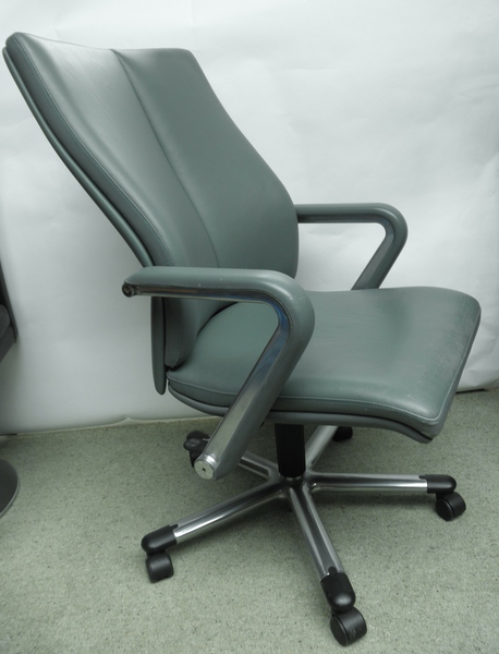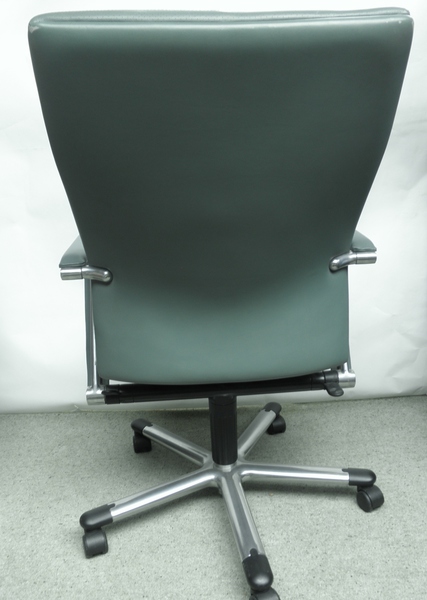 An ergonomically shaped and very comfortable desk chair from Hülsta, labelled and covered in a light blue/green leather with padded armrests. Raised on castors the 5 branched stand has a height adjustable lever and padded armrests. This high quality, German piece, has only minor scuffing at the top back corners and minimal signs of use to the front of the seat, this executive desk chair is in exceptionally good condition.