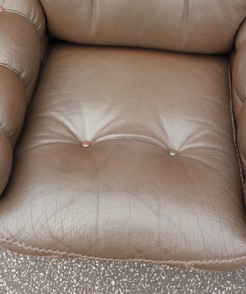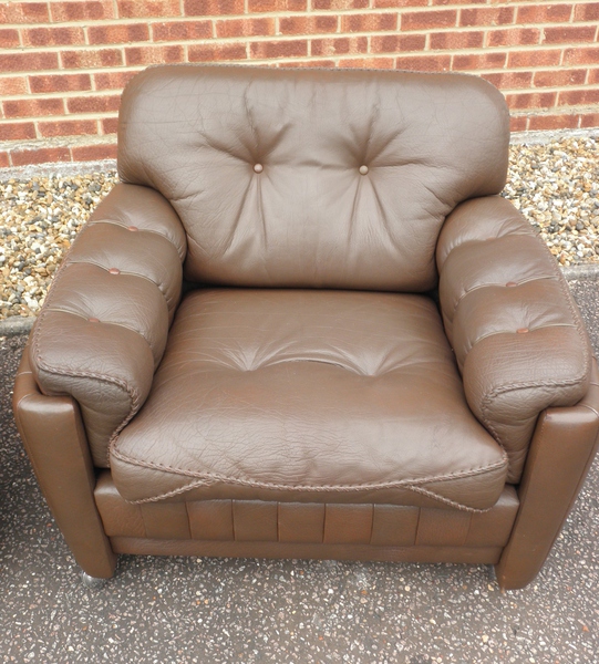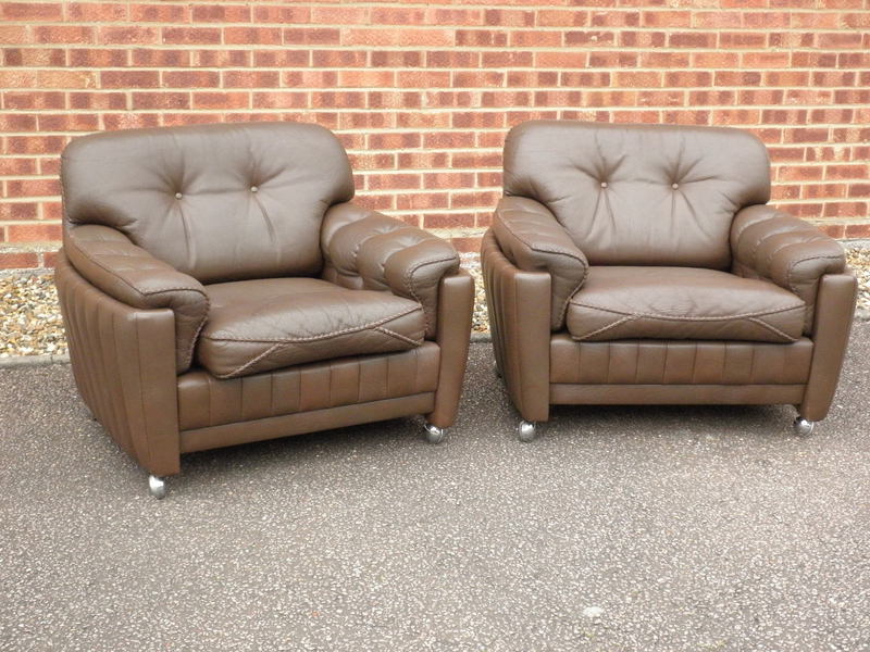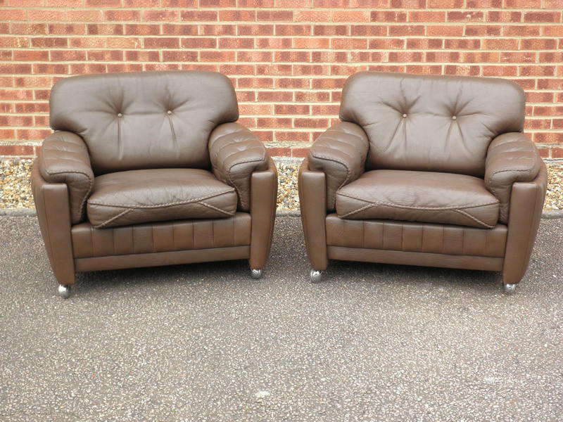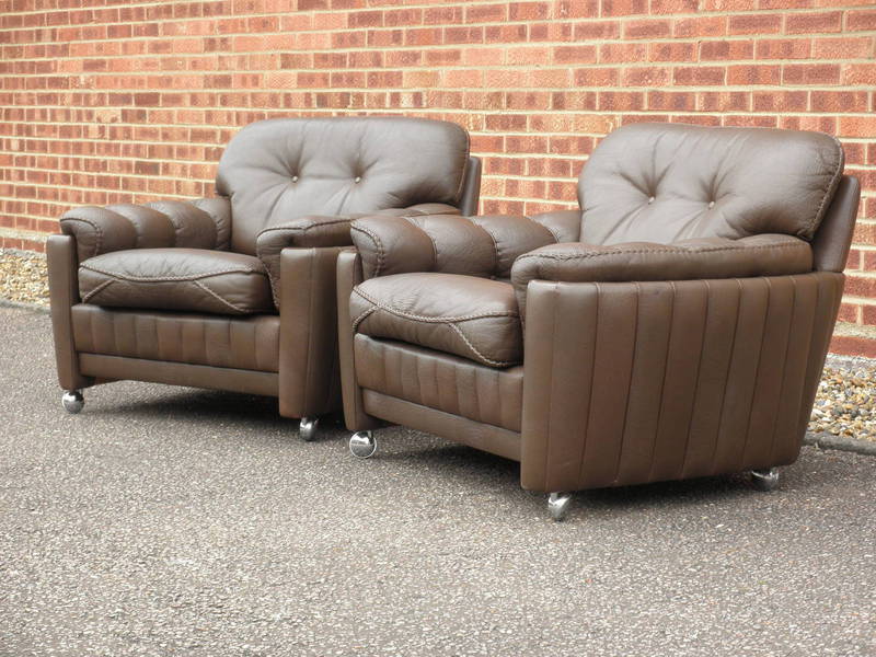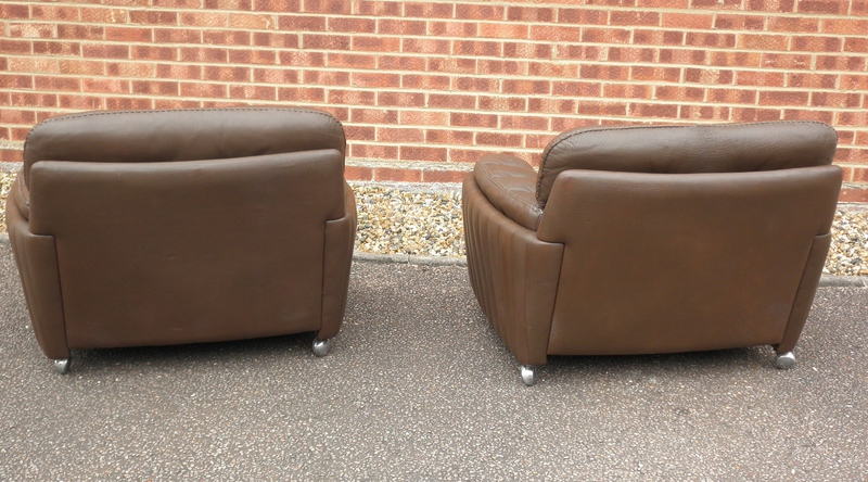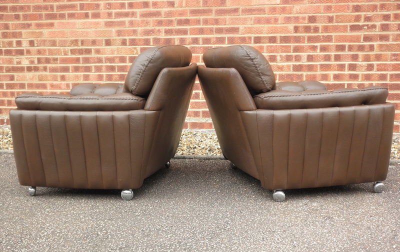 In excellent condition throughout, the armchairs are raised on chromed castors and the leather buttoned cushions are finished with enhanced ‘baseball’ style stitching as used by Ib Madsen Og Acton Schubell and similar to the design of Sigurd Ressell’s Model 123 Suite.