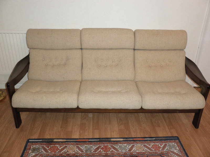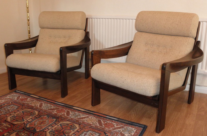 1960s vintage three-piece suite comprising, a 3-seater settee with matching pair of armchairs in a style we consider ranks equally alongside those by designers such as Arne Vodder, Ole Wanscher and Guy Rogers, and was possibly designed by Illum Wikkelso (1919-1999) for Niels Eilersen.