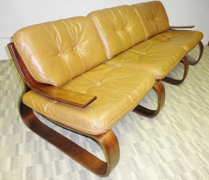 1960s Scandinavian Leather & Bentwood Sofa – 3 Seater - SOLD