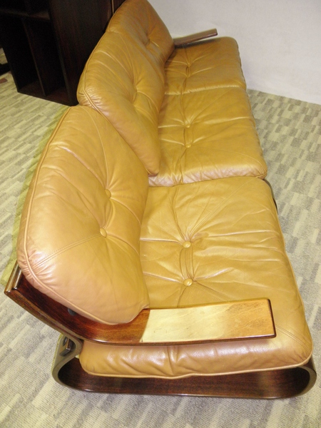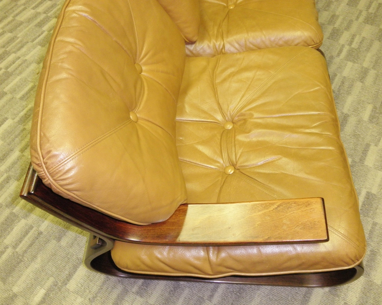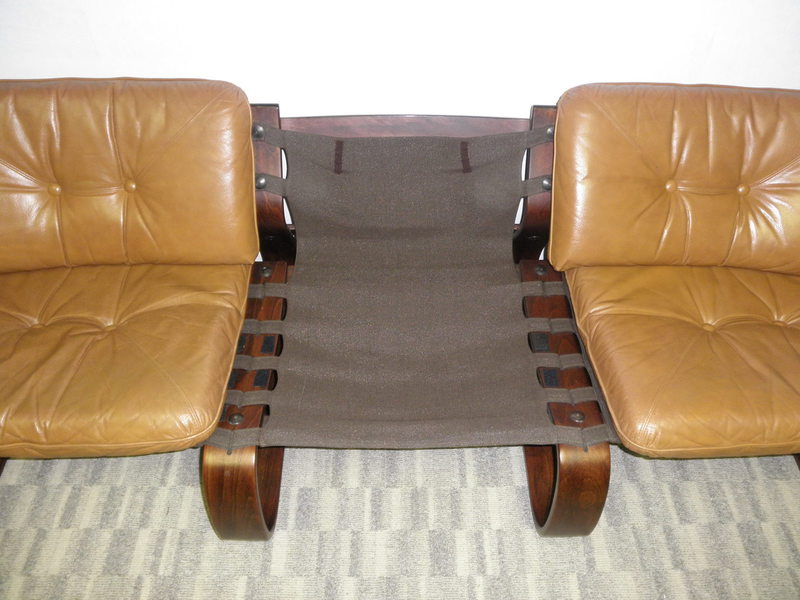 We have never seen another in this particular form and apart from minor stretching in the canvas slings, the sofa frame and the cushions are all in excellent condition with only minimal scuffing to the leather – no tears and all buttons in situ.