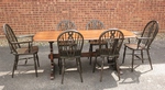 Finished in dark oak/elm this set of chairs would provide a suitable match to some of the Ercol Refectory tables we currently have in stock see: DT 21.