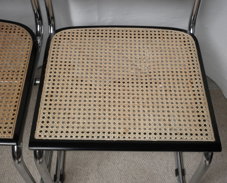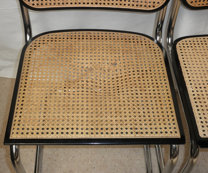 Made in Italy, the chairs have minimal signs of age to the chrome, although one of the hand-woven cane seats is not too bad (possibly having been replaced in the past) but, not too surprisingly, three do require renewal or replacement with either new cane or other material insert and are priced accordingly.