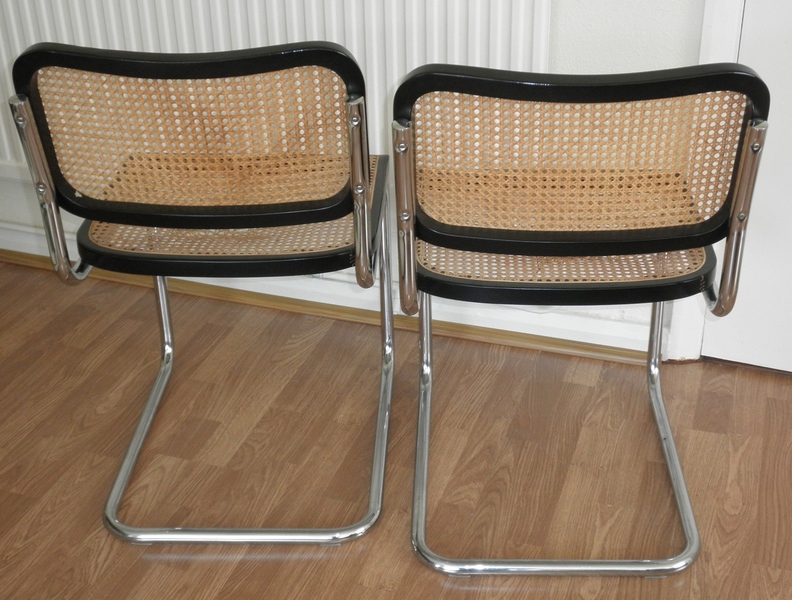 These popular, hand-woven cane and tubular steel framed, cantilever chairs were designed by Marcel Breuer in 1928 while at the Bauhaus. The Cesca chair was named after his daughter, Francesca, and this design continues to be a timeless classic, known for flexibility and a very comfortable seating position.