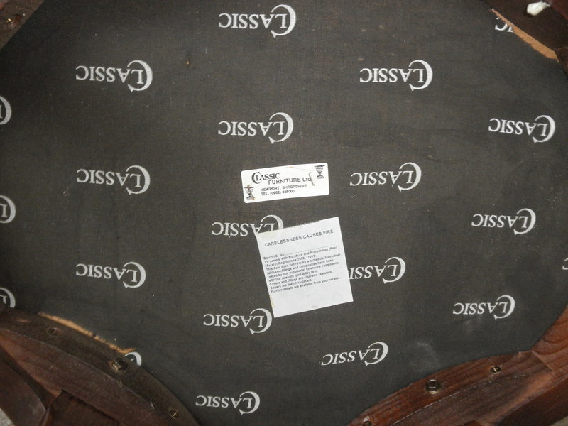 All chairs are in a good, clean condition with one having slight differences in style at the back and to the carving and studding (please see chair shown in front centre of group photos and 3 photos of the back without an additional bar).