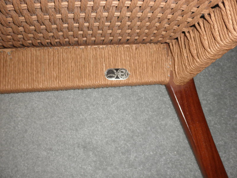 A set of four high-back 1960s dining chairs designed by Arne Hovmand-Olsen for and labelled by the manufacturer, Mogens Kold. These totally original and sturdy chairs made from afromosia with papercord seats are in excellent, vintage condition, adding classic Danish elegance and style to any setting. Sourced in such good original condition the chairs have not required any restoration and remain sound throughout.