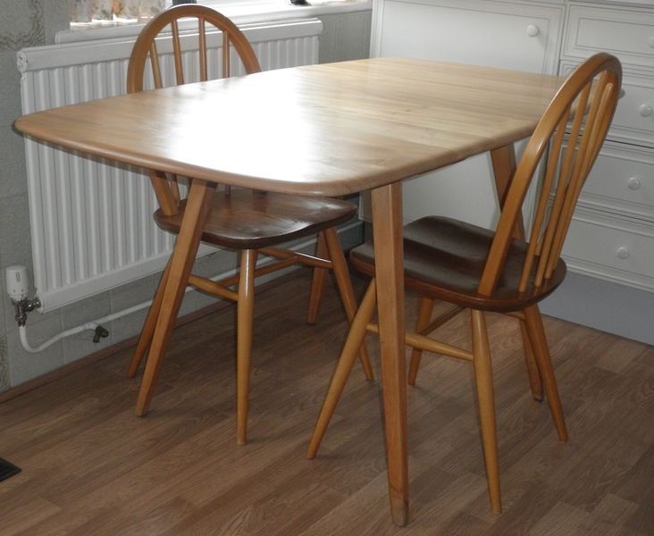 DT 11 - Ercol Drop Leaf Dining Table – Natural Finish - Table is no longer available. A light coloured (Natural finish) Ercol drop leaf table, raised on four slightly splayed legs, is an ideal and very practical solution where space is limited as the basic centre square table top comfortably seats 2, or fully extends to a large oblong (resembling the Ercol Plank table) capable of seating 6 people.