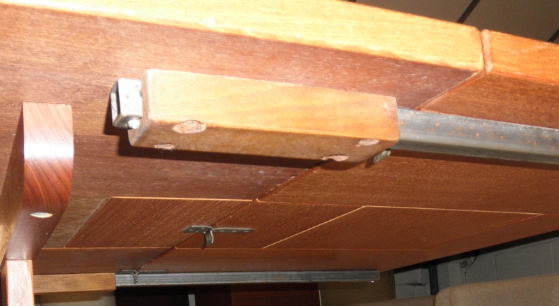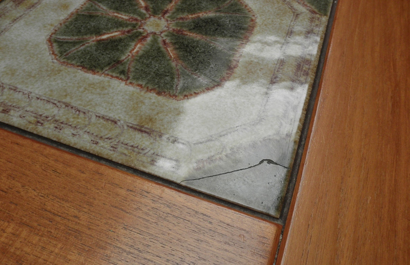 Overall, condition is very good with changes in wood grain direction producing much of the colour variation in addition to slight fading. One tile has a small (2½”/6cm) crack across a corner and some scuffing is evident on inside of the ‘T’ bar feet.