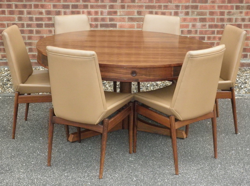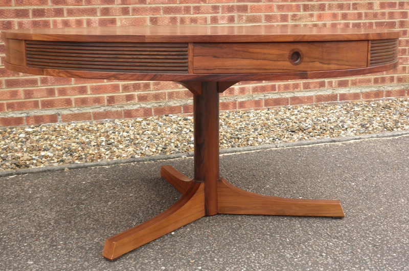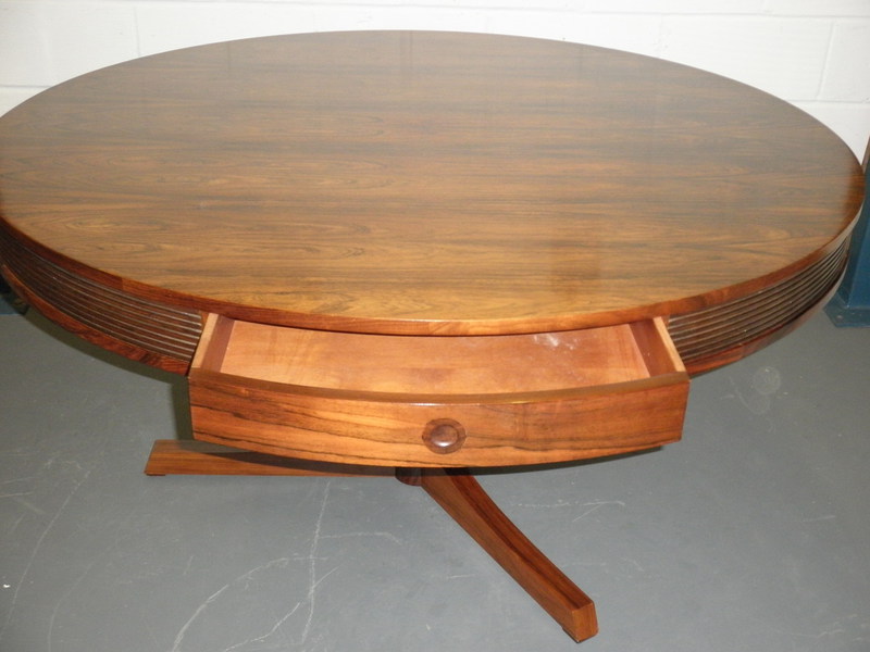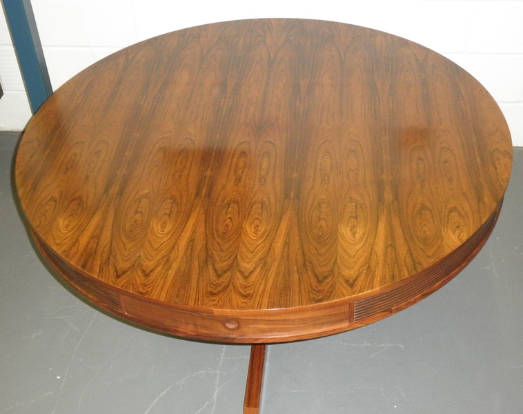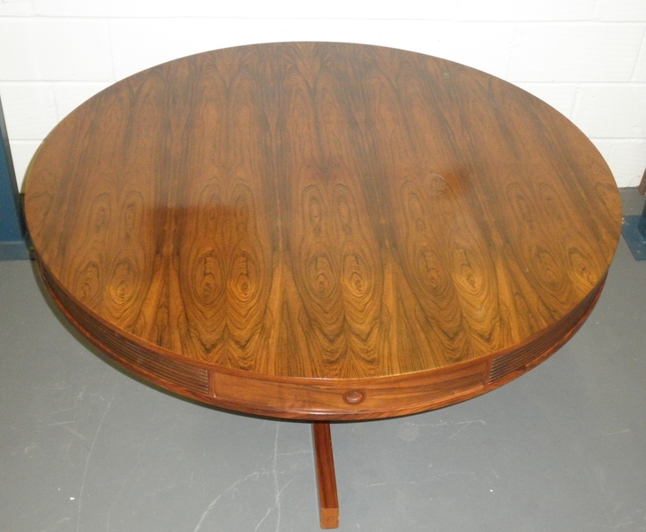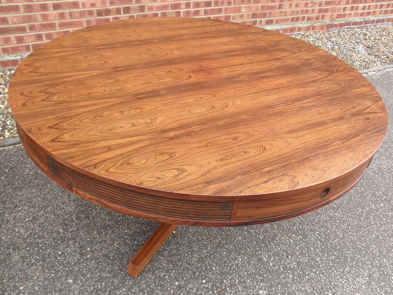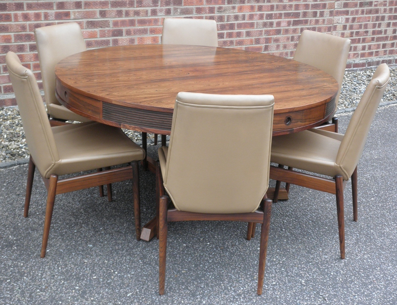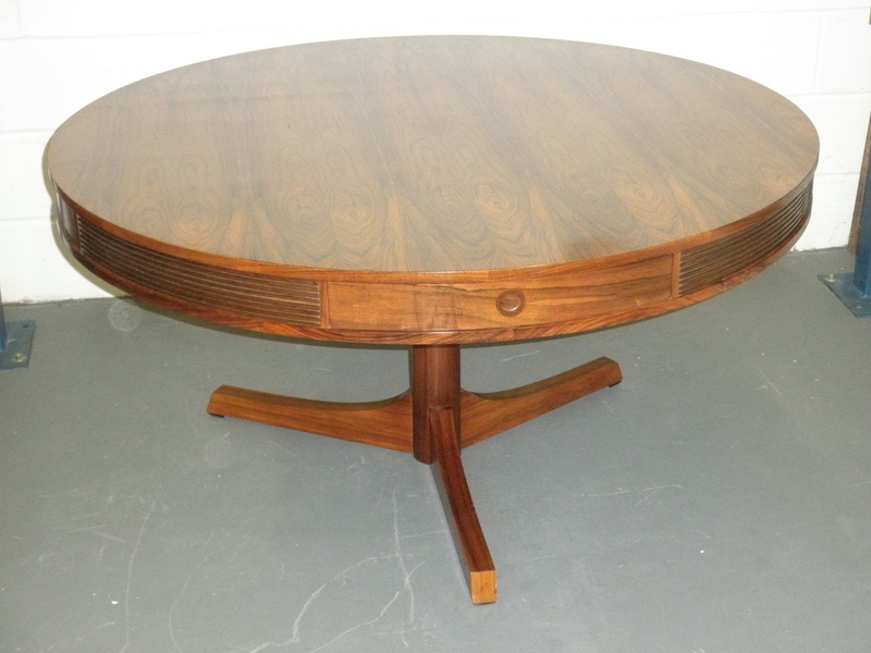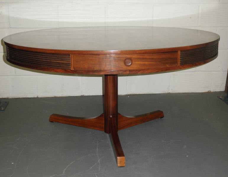 From one of Britain’s best furniture designers, Robert Heritage and one of the finest cabinet makers, Archie Shine, together famous for producing quality pieces, comes this beautiful rosewood drum dining table (circa 1960) being first designed in 1959 as part of the Bridgeford collection.