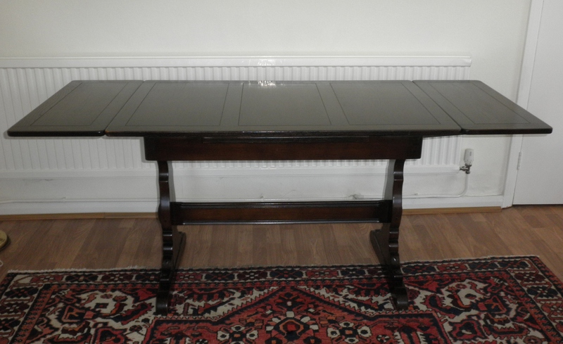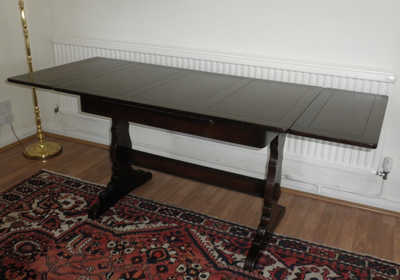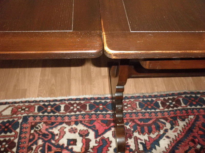 The unrestored table top is in the excellent original finish, with very minor evidence of scuffing to one end by the slide-out leaf where it has been predominately used and the traditional shaped refectory under-frame is in very good, sturdy and stable condition.