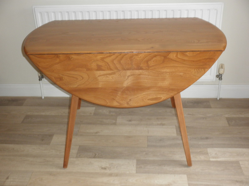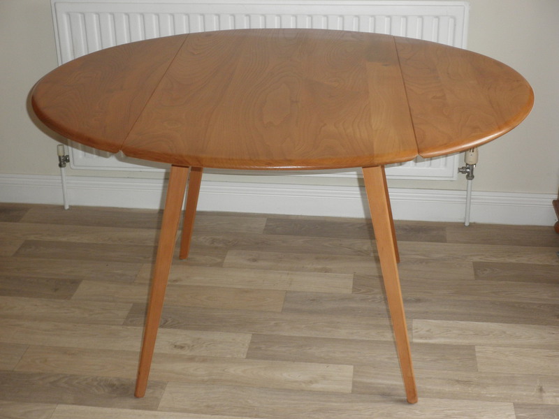 A labelled, drop-leaf dining table in Ercol’s natural finish, originally designed in the mid-1950s which continues to be a popular classic Ercol piece with clean lines that blend well in modern interiors.