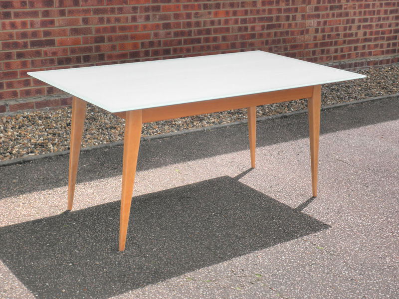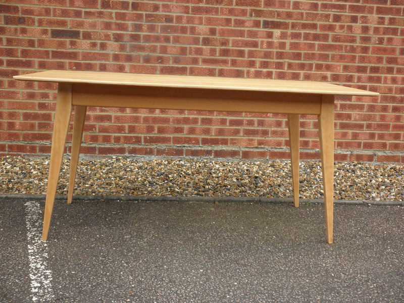The table is constructed from beech the top being ply, and splayed legs are detachable for ease of transporting.